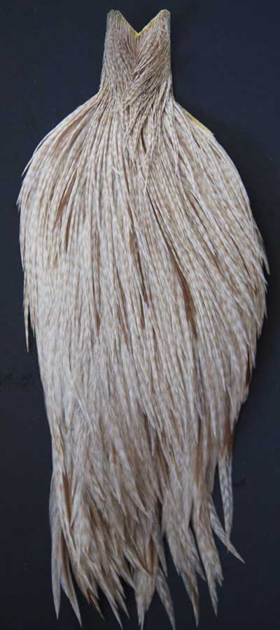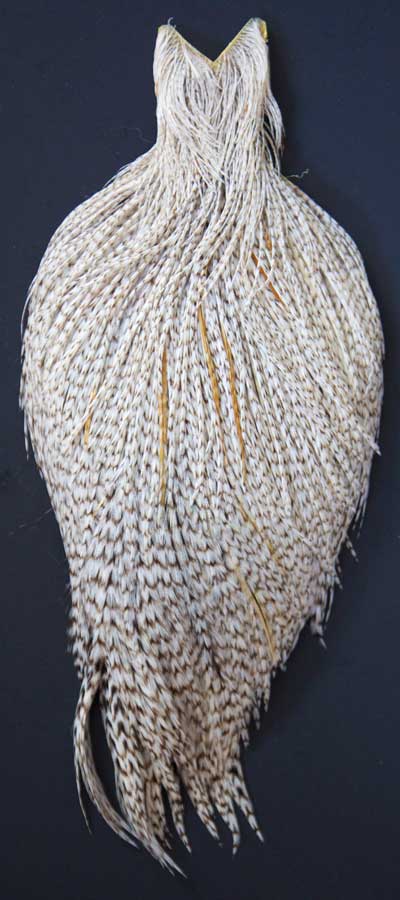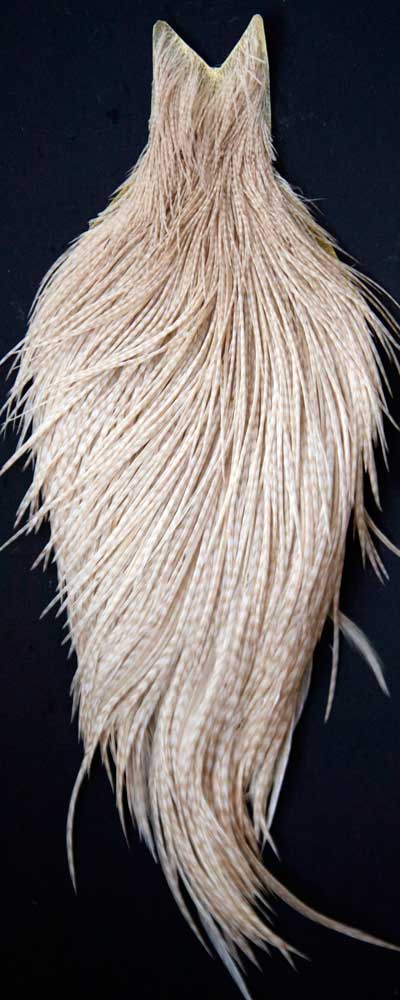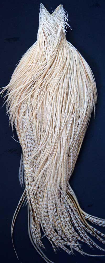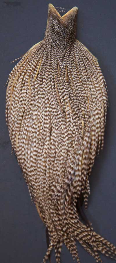 Lots of cream and ginger mixed in with light grizzly. These Whiting capes are the same high quality capes you saw at the fly fishing shows. Graded on the old standard of #1, #2, and #3, according to the number of flies you can tie from the cape, you won't find a better deal anywhere!