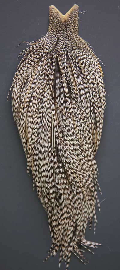 Look at the feather count on this cape. Can't get much smaller than the ones on the top of this one.. These Whiting capes are the same high quality capes you saw at the fly fishing shows. Graded on the old standard of #1, #2, and #3, according to the number of flies you can tie from the cape, you won't find a better deal anywhere!
