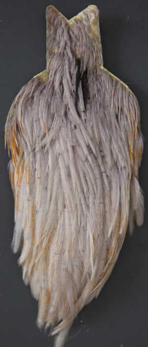 Don't have a light dun for your parachuette bwo? Here's a good one you don't want to pass up! Kind of a different cape, there are lots of feathers on this one. If you're looking for other colors, I stock quite a few. To see them all, visit my page; Whiting Dry Fly Show Capes.
