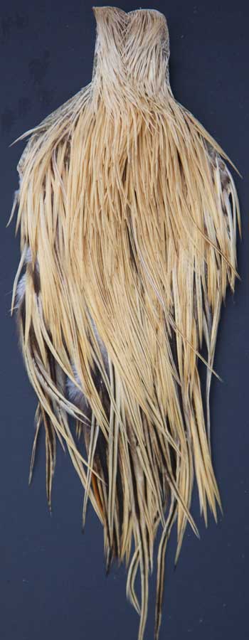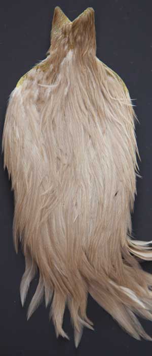 This cape is small, small like the old Hoffman's used to be. The feathers are like the old hoffman capes, stiff enough to prick your lip So if you're looking for a deal, here it is! If you're looking for other colors, I stock quite a few. To see them all, visit my page; Whiting Dry Fly Show Capes.