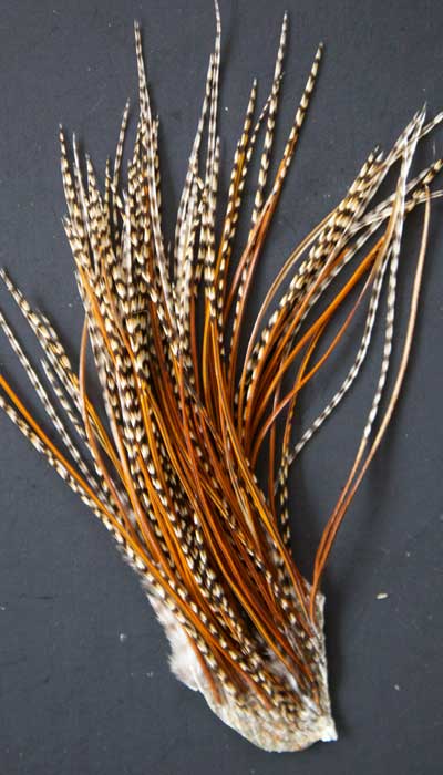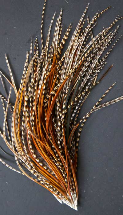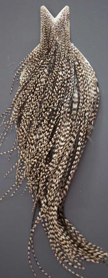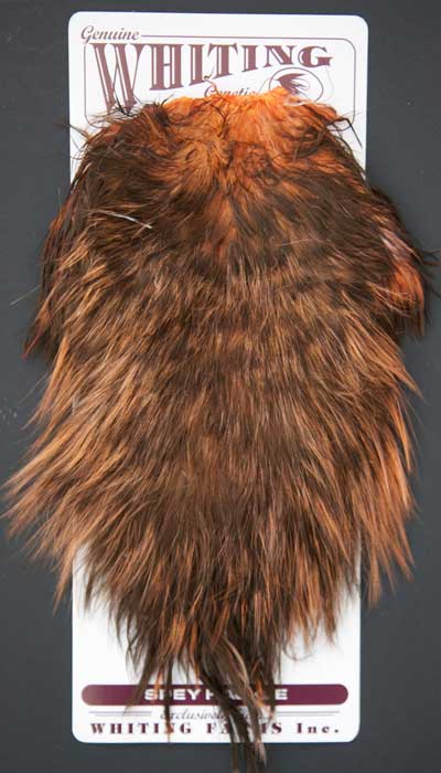 Not often you come accross an natural coachman in the Whiting line. I beauty! The skins are in bins and once in a while a customer gets wild-eyed digging through looking for just the right one. Always a popular color, coancman is called for in many sprng patterns. Perfect for buggers, you can't go wrong on this one!