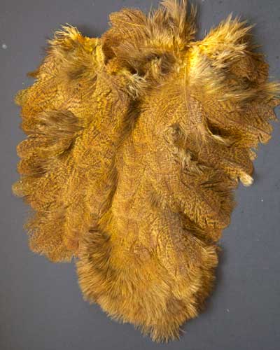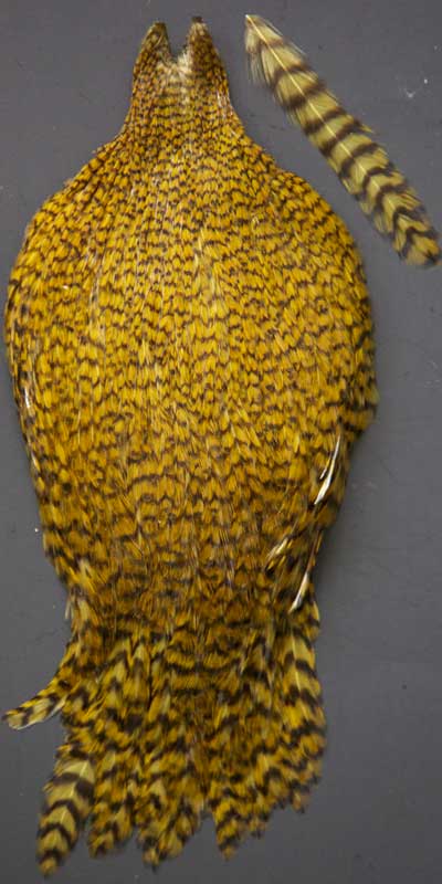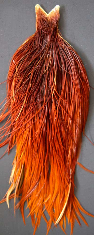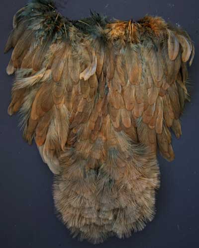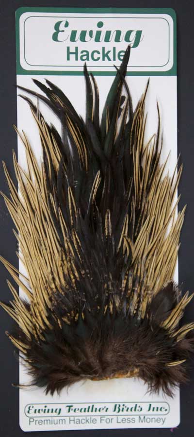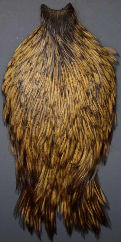 Sometimes I come across a few interesting variants. Here one of the more rare ones. The feathers on this cape have the black center as well as black tips and edges. The uniqueness is the ginger color instead of the dark brown found on a cocky-bondhu. Looking for other colors, please visit my page; Darbee Duns to see the full selection of colors.