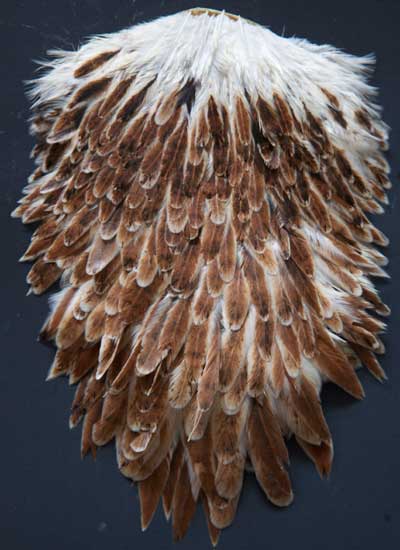 Here's one that has gained quite a following. It's a rare on and I get call for this hen cape all the time. The feathers on these Whiting hen capes are small to medium in size and the stems are long enough to get 5 to 6 wraps per feather. Looking for individual colors? Visit my page; Whiting Hen Capes.