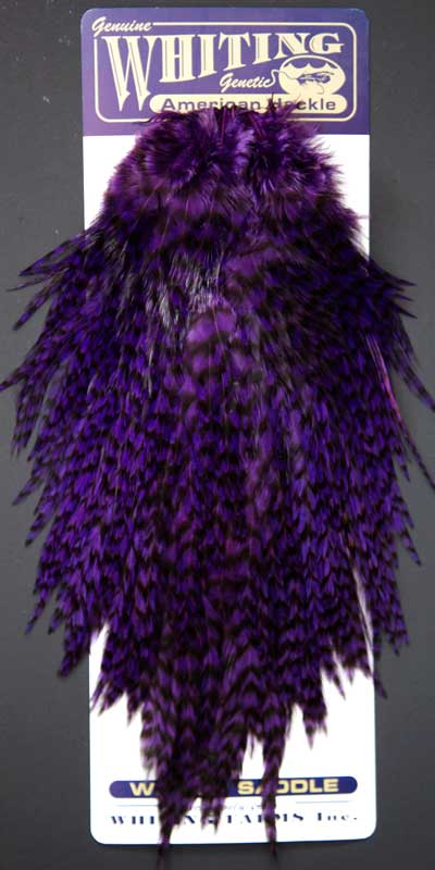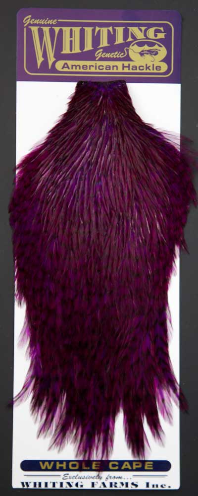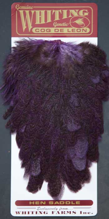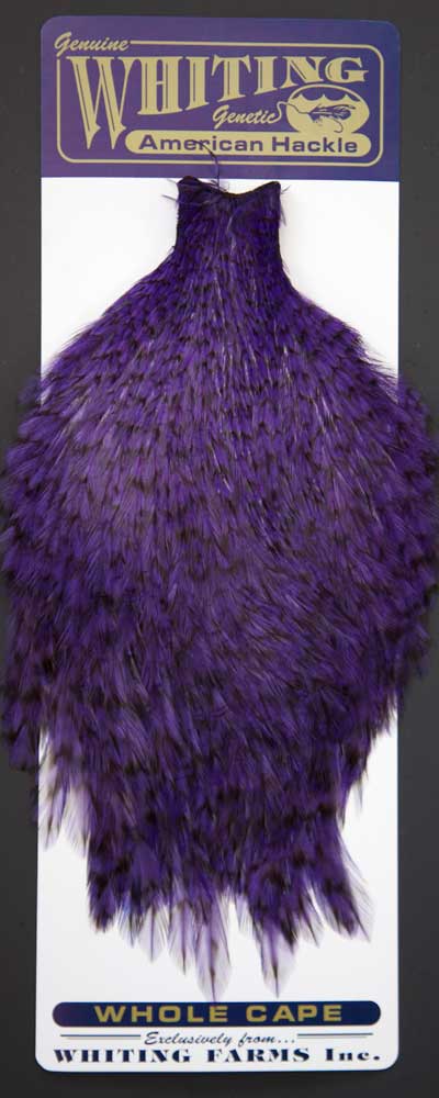 Grizzly dyed Purple Grizzly dyed HiVis colors are a hot item these days. Many customers tell me how they use them to tie catskill patterns to fish off the piers for bluegills. Get a bluegill on a fly rod and you've got a fight on your hands! To see other colors, visit my page; Whiting Show Capes.