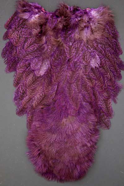 These feathers on these patches from the butt end of an American saddle are the ones everyone wants. Feather length; 6 to 9 inches. The latest generation of Whiting Farms American rooster saddles are HUGE, the feathers are wide, webby, and long! Looking for other colors? Just let me know, I've got a lot in stock!