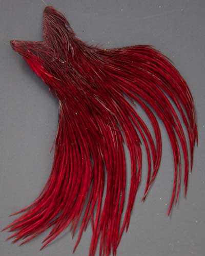 Tying leech flies and having a hard time finding wide webby long feathers? Well the feathers on these saddles are perfect! Measuring up to 1/2 inch wide at the base and tapering to a point, they are on average 9" - 11" long. Looking for olive or black, I have a few of those too.