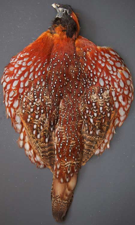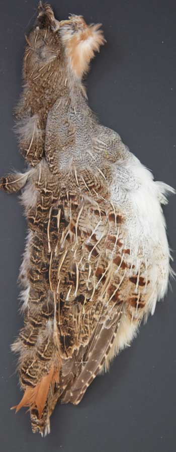 Now here's a rare one! Beautifully marked and just loo at the small stuff on the top. Looks more like a saddle than a cape with all those long feathers. From 12's down into the 20's, this one's goint to look good on your tying bench!