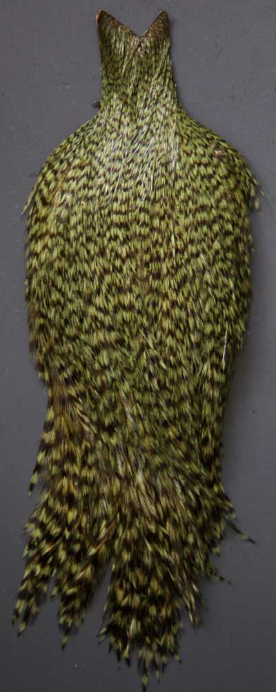 Here's a color you don't come across anywhere else. Perfect for tying up your large green drakes, the color is spot on and the barbs are long and stiff! Seems all the capes I see these days are some shade of pardo. Sure to not last long, this is the only one so don't miss out on this one.