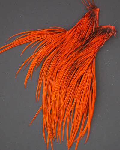 Tying leech flies and having a hard time finding wide webby long feathers? Well the feathers on these saddles are perfect! Measuring up to 1/2 inch wide at the base and tapering to a point, they are on average 9" - 11" long. Looking for olive or black, I have a few of those too.