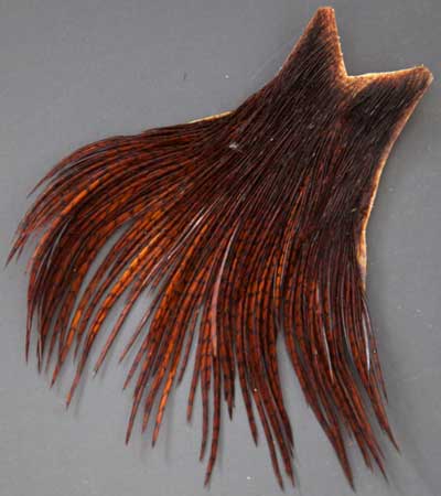 Sometimes I come across a few interesting variants. Here one of the more rare ones. The feathers on this cape have the black center as well as black tips and edges. The uniqueness is the ginger color instead of the dark brown found on a cocky-bondhu. Looking for other colors, please visit my page; Darbee Duns to see the full selection of colors.
