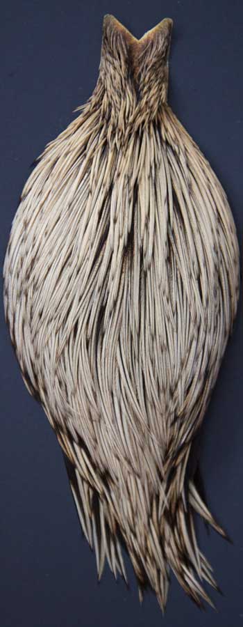 Now here's a rare one! Beautifully marked and just loo at the small stuff on the top. Looks more like a saddle than a cape with all those long feathers. From 12's down into the 20's, this one's goint to look good on your tying bench!